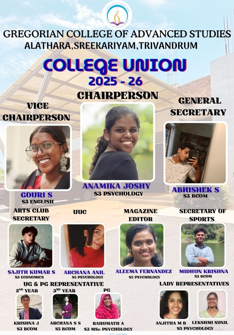 The word ‘Gregorian’, evokes the names of great Saints of the Church with the name ‘Gregorios’ which stands for “the Fear of the Lord is the Beginning of Knowledge”(Proverb 1:7). St Gregorios of Nazianzus, St Gregorios of Nyssa, St Gregorios of Parumala, St Gregorios of Pampady and Dr. Paulos Mar Gregorios were great men well-known for piety, holiness and scholarships at national and international levels. The adjective Gregorian is used as synonym both for devotion and knowledge and hence the College stands for the noble objective of value-based and holistic education.