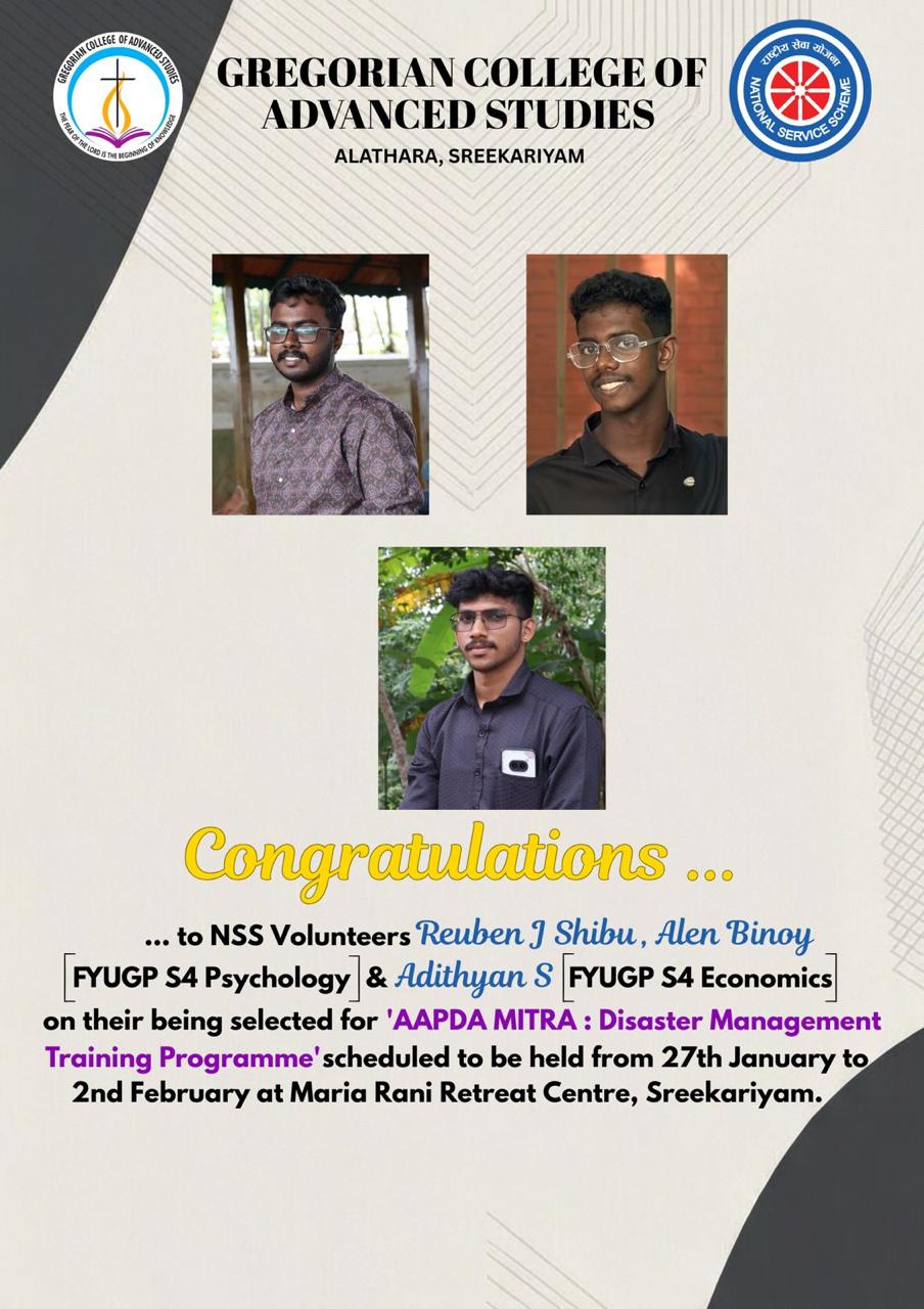 NSS Volunteers selected for AAPDA MITRA : Disaster Management Training Programm...