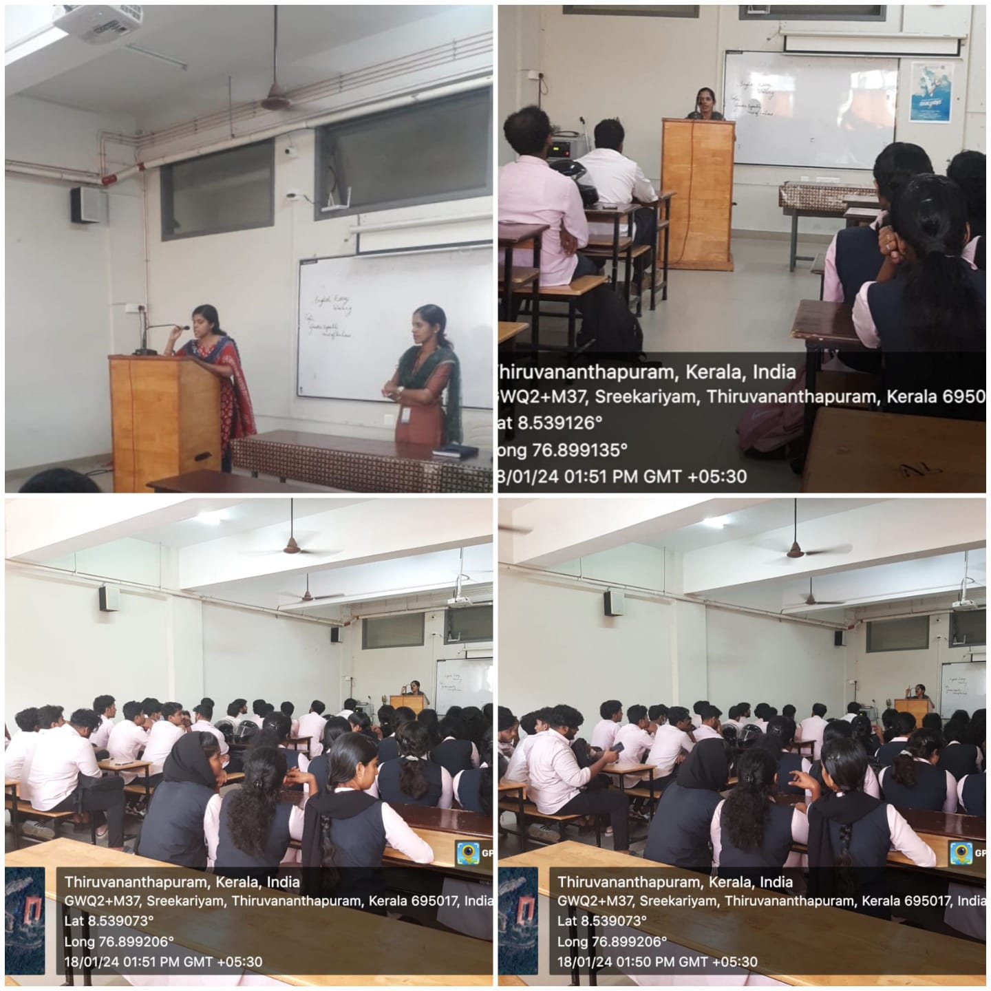 A College level Awareness Campaign' Connect Career to Campus (CCC)'was organised by PG Department of Commerce &Department of Economics in association with Career Guidance Cell, IQAC &Kerala Knowledge Economy Mission (KKEM)on 18th January 2024.Ms Leksmi K ,Talent Curation Executive ,KKEM was the resource person. The main aim of the campaign was to promote the concept of ‘Right Job @ Right Time’ by raising awareness about new-age jobs, changes in global job markets, the importance of skilling, and encouraging students to find the right career. Students were given the opportunity to get registered in DWMS Portal which is a platform for connecting jobseekers with jobgivers .