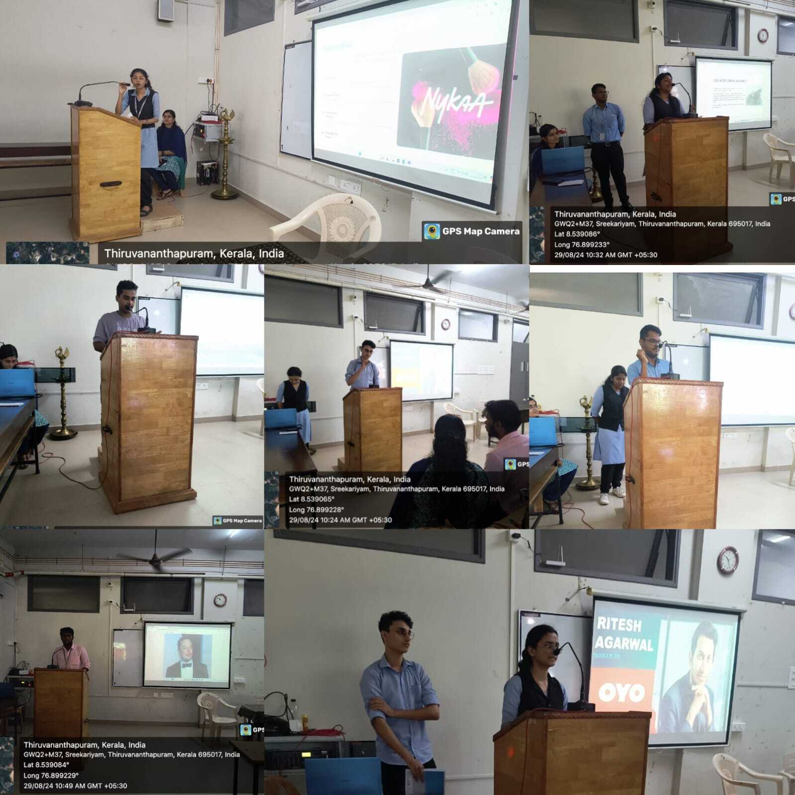 The Entrepreneurship Development club of our college conducted a storytelling competition of successful entrepreneurs. Students actively participated in the competition. Students presented the successful stories of various entrepreneurs with the aid of PowerPoint presentations. Aswanth S S(S3 B.Com), Ann Tresa Thomas (S5 B1) and Abhishek Alex, and Hanna Ani Johnson and Rohith Aji Cheriyan (S5B1) won first, second, and third prizes respectively.